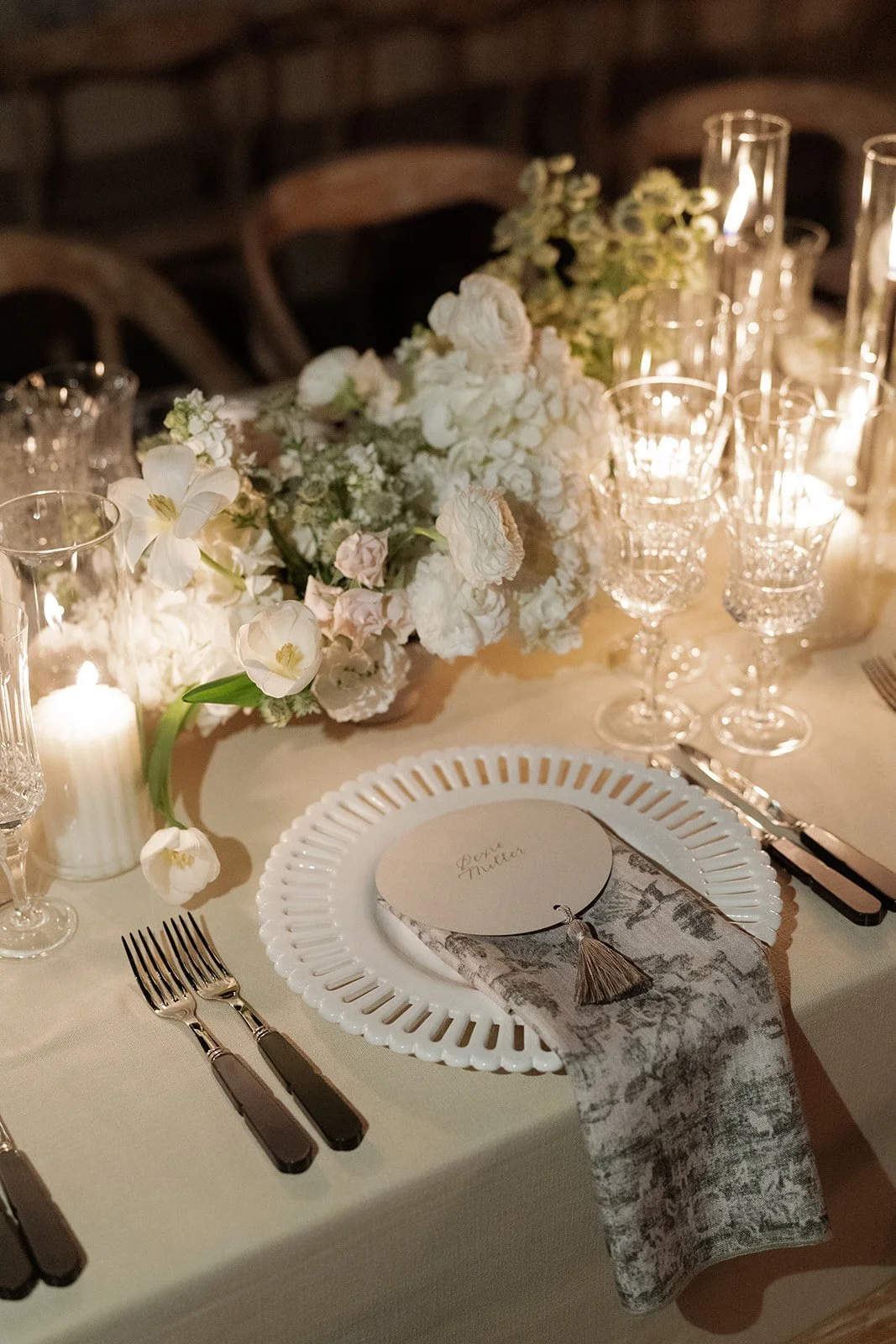 A classically beautiful wedding day in wine country. All white florals and loads of candlelight perfectly set amongst the autumnal toned vines.